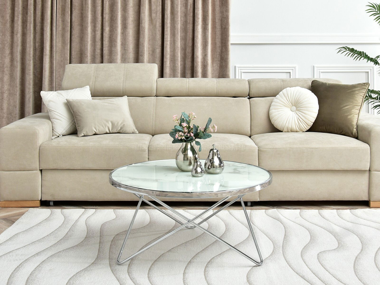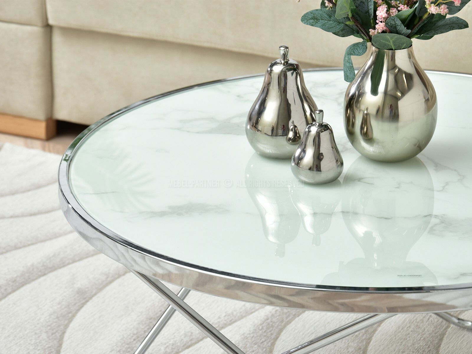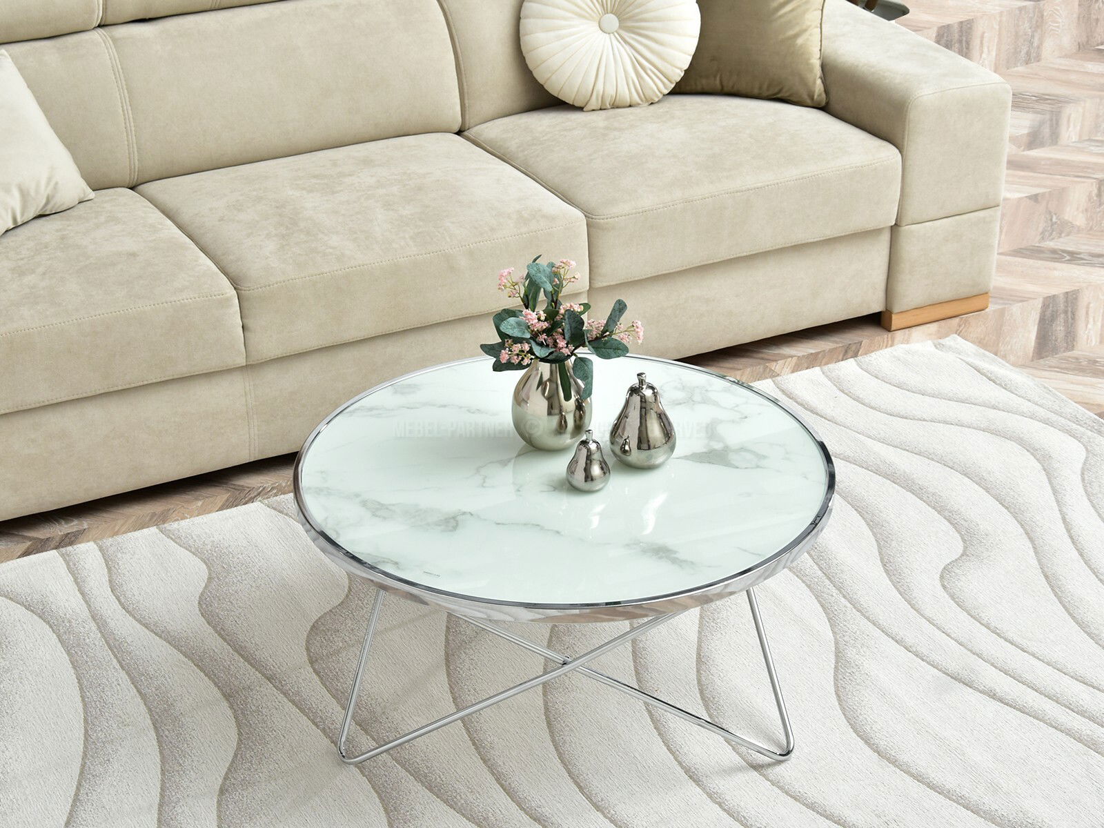 Konferenční stolek Armin Xl (bílý mramor + chromová)
