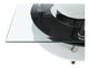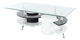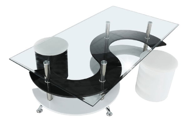 Elegantní konferenční stolek ojedinělého a stylového designu. Polička stolku je zahnutá do tvaru písmene S. Vrchní tabule stolku je z čirého tvrzeného skla. Stolek má kovové nožičky a je v barevném provedení bílá barva v kombinaci s černou. K stolku jsou dodávány dvě taburetky.