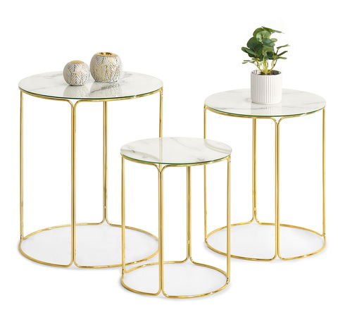 Konferenční stolek Belianni Zest (bílý mramor + zlatá)