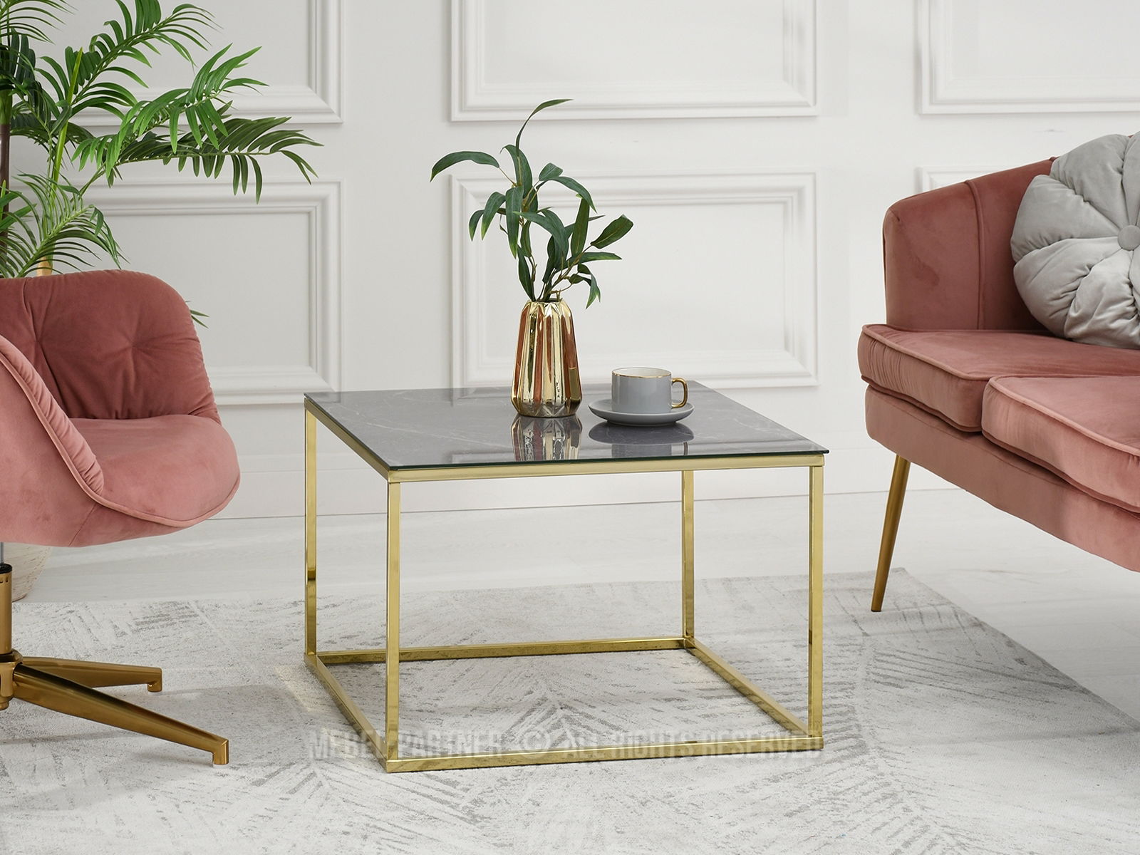 Konferenční stolek Bella M (šedý mramor + zlatá)