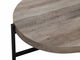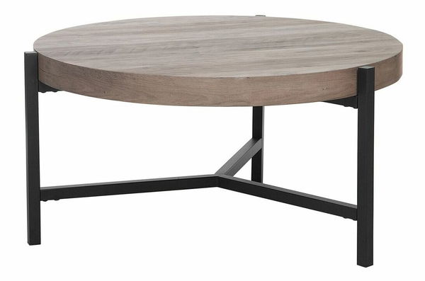 Dřevěný vzhled tohoto konferenčního stolku vnese do prostoru nádech industriálního stylu. Třínohá kovová konstrukce je doplněna kulatou stolovou deskou se vzhledem dřeva. Jednoduchá kombinace černého kovu a dřevěného vzhledu působí minimalistickým dojmem, díky čemuž lze tento stolek kombinovat s různými styly interiérového zařízení – od moderního až po glamour.