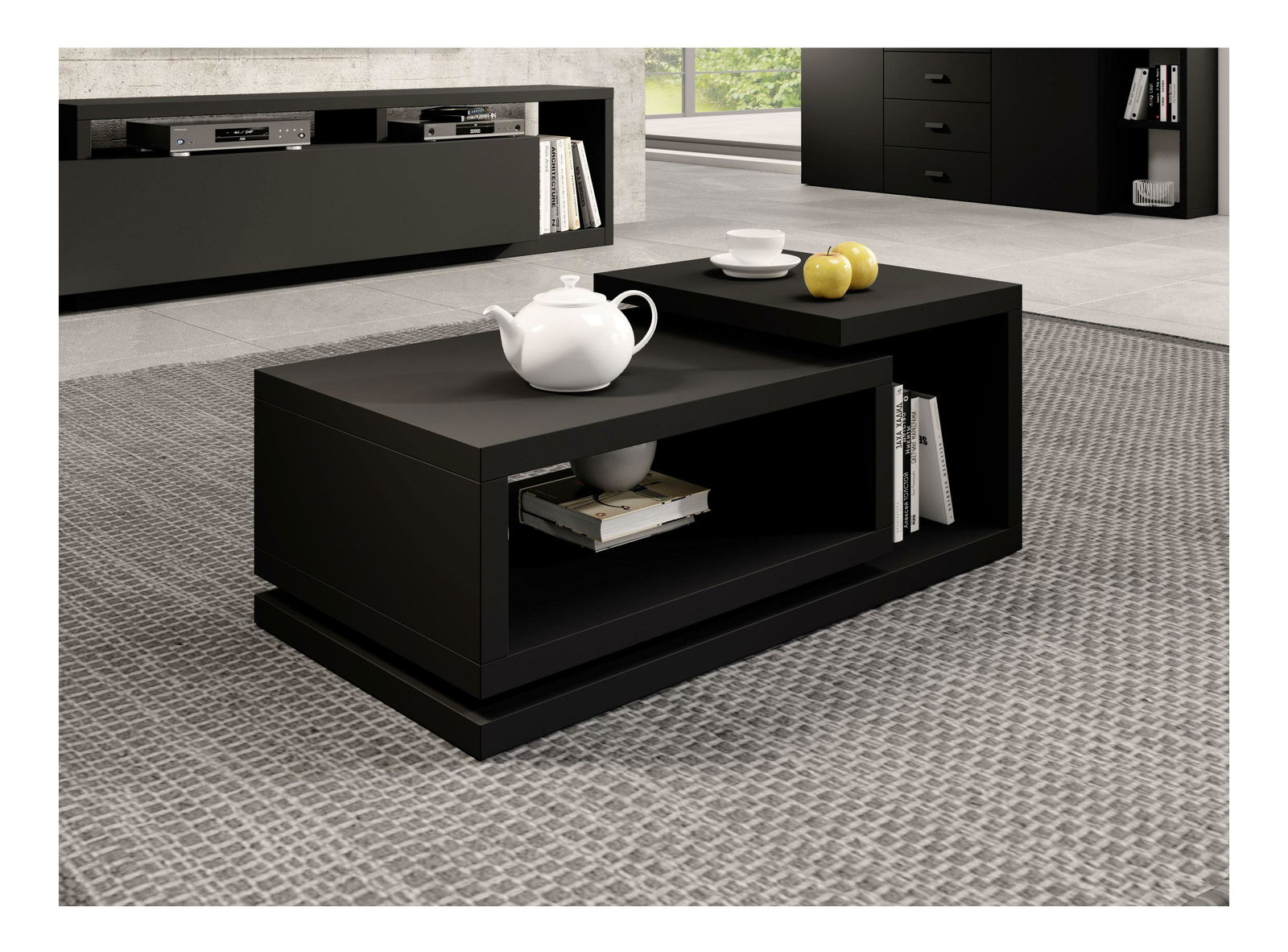 Hledáte kombinaci elegance a moderního stylu pro vaši domácnost? Nahlédněte na kombinaci produktů ze série Bilsby v černém provedení. Konferenční stolek s úložným prostorem v podobě otevřeného prostoru pod vrchní deskou. Prostor je rozdělen na dva úložné prostory.