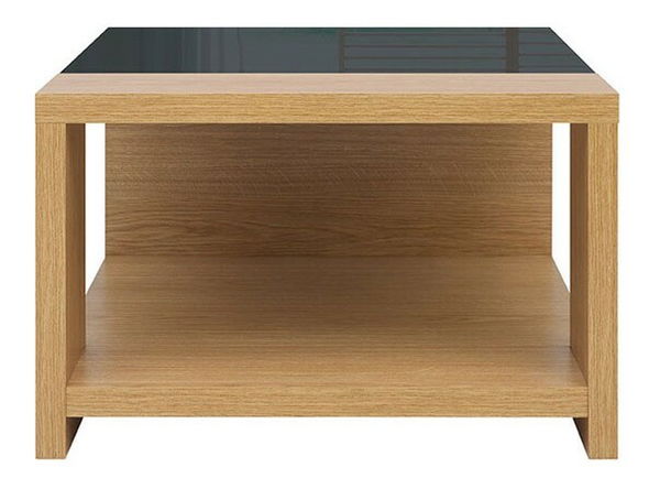 Jednoduchý konferenční stolek, který mě v zadní části černé tvrzené sklo. Zadní spodní část stojí na kolečkách.