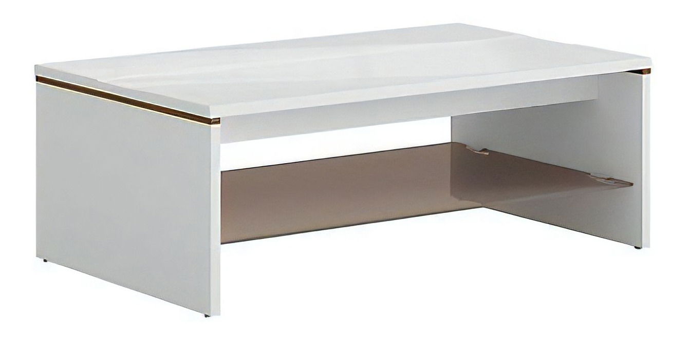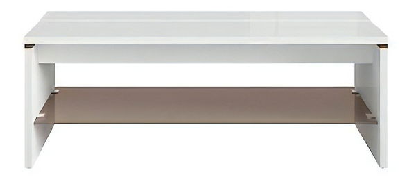 Dizajnový konferenční stolek s praktickou spodní skleněnou policí. Hranaté tvary s barevným provedením bílého lesku + prvky dubu canterburry dělají z tohoto kousku skvělý moderní doplněk do vašeho interiéru. Materiál: Nábytková deska. Nábytek disponuje bezúchytové otevíráním dvířek a při objednat si můžete LED osvětlení.