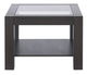 Čtvercový konferenční stolek s prosklenou vrchní deskou a s odkládací poličkou pro časopisy, knížky nebo jiné drobnosti. Stolek má moderní design a bude dokonalým doplňkem do obývacích pokojů.
