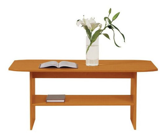 Širší konferenční stolek, který má moderní design a stylové zkosené hrany. Má i praktickou odkládací poličku. Bude hlavně velmi praktickým doplňkem a odložíte si na něj oblíbenou knížku, případně pohoštění pro vaši návštěvu.