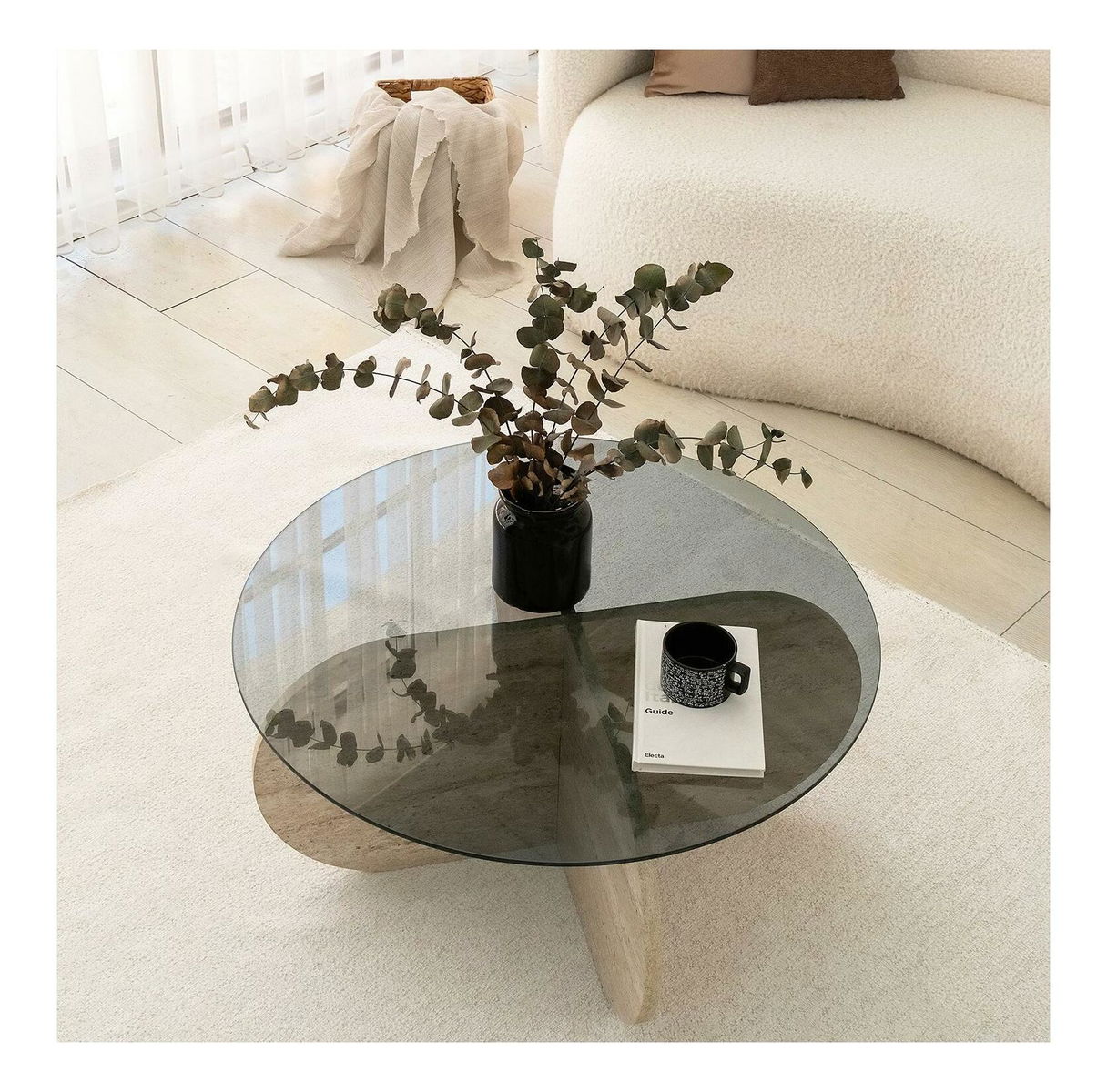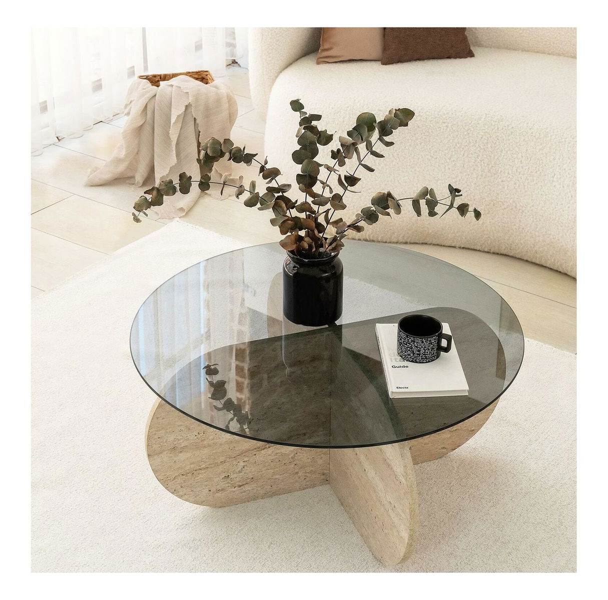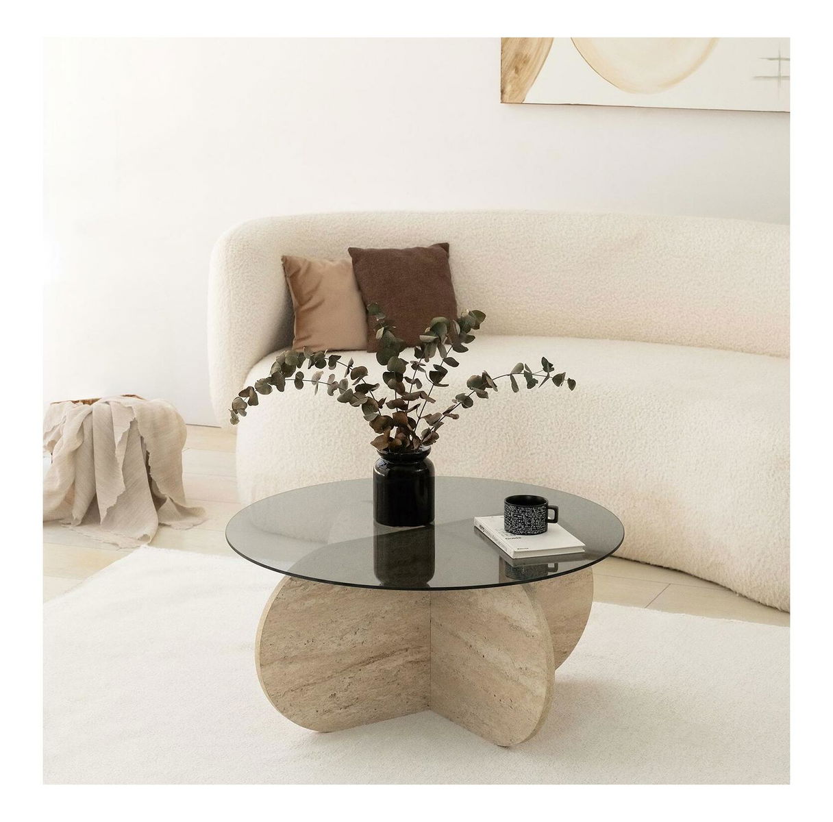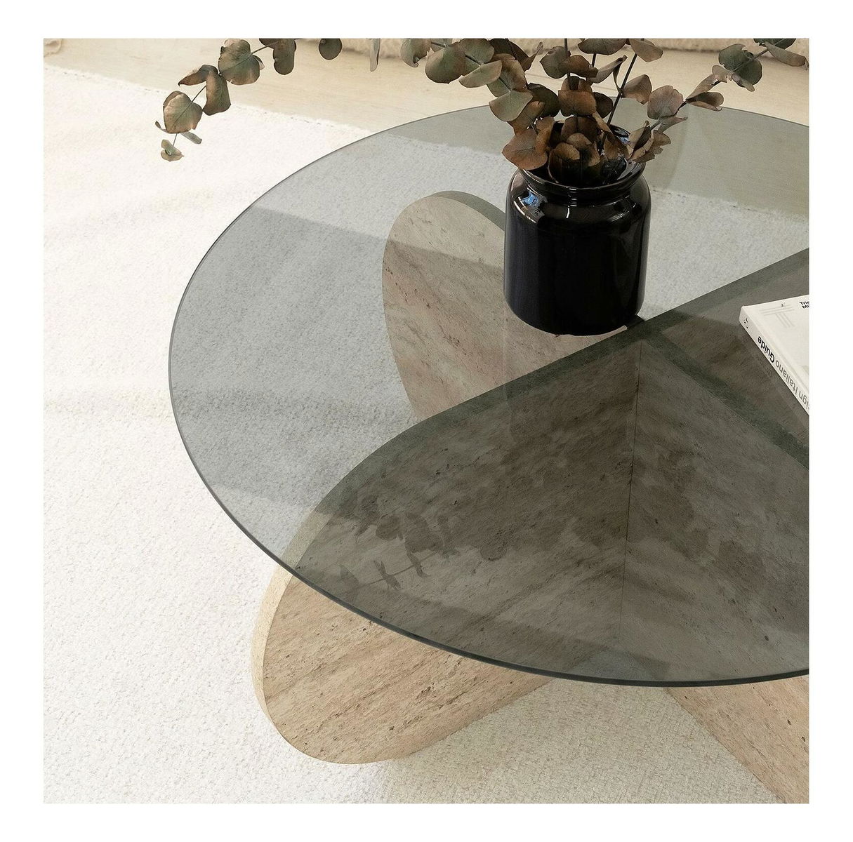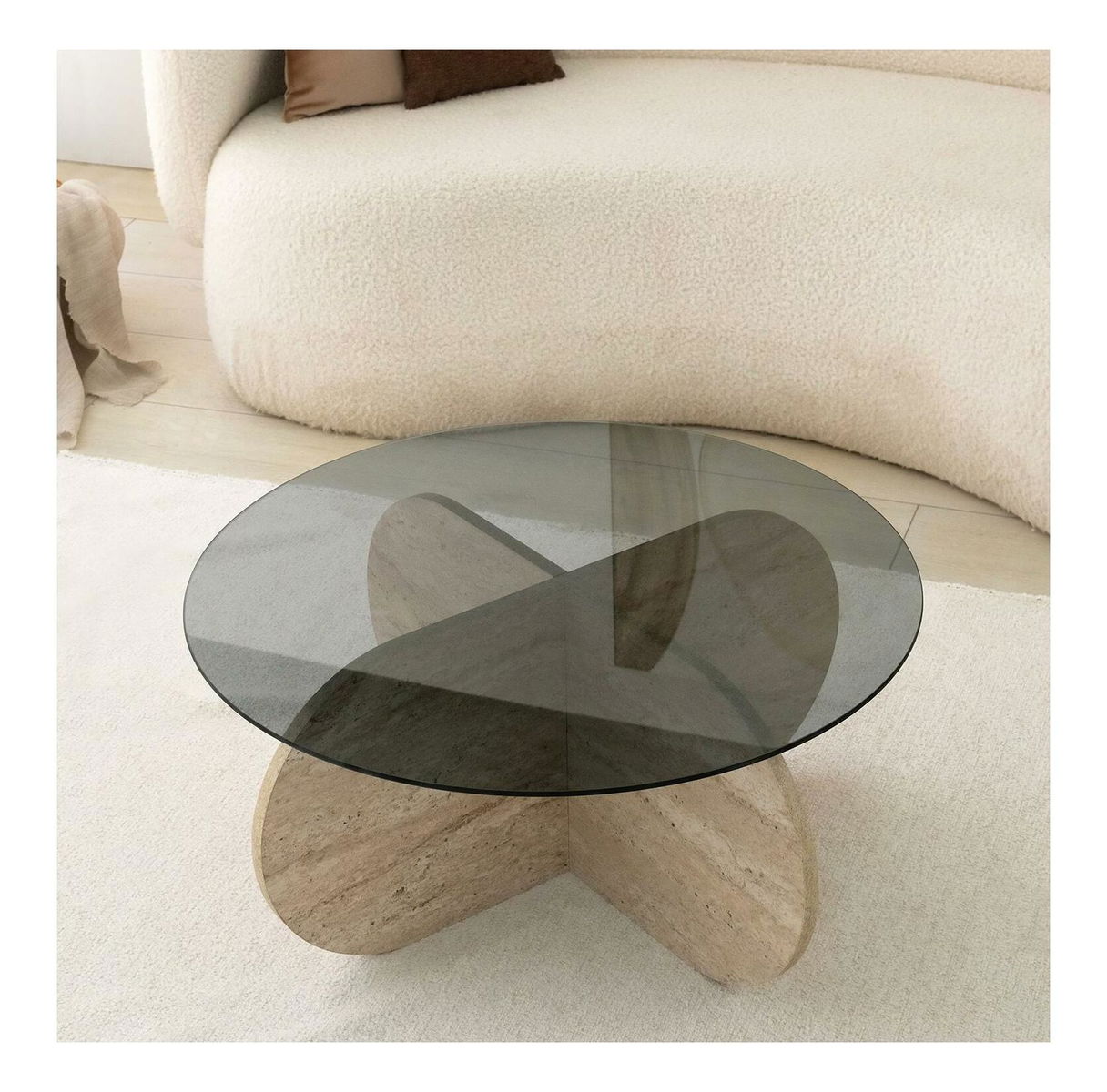 Konferenční stolek Bubbly (travertin + kouřová)