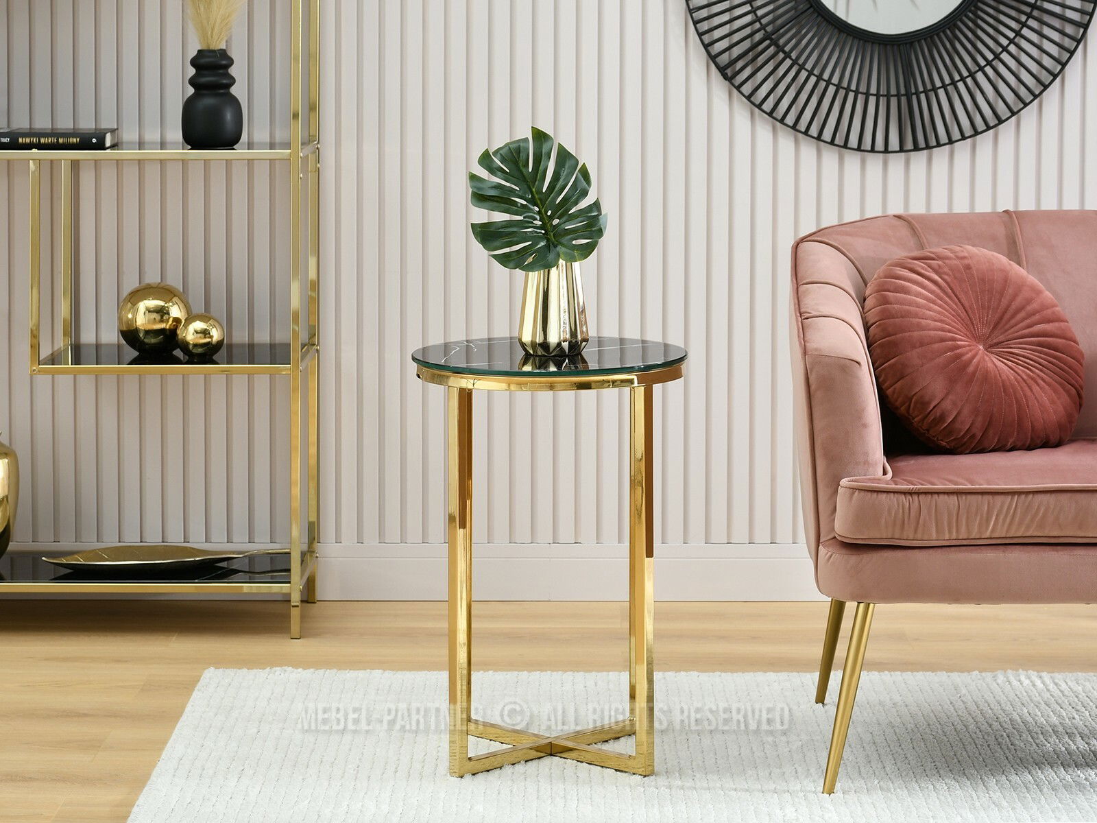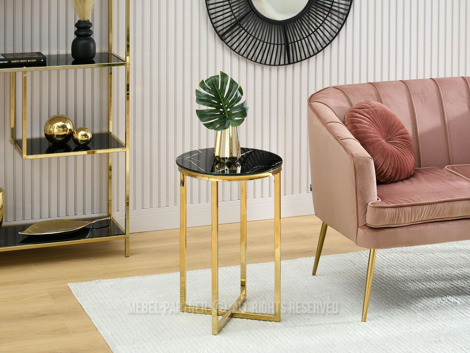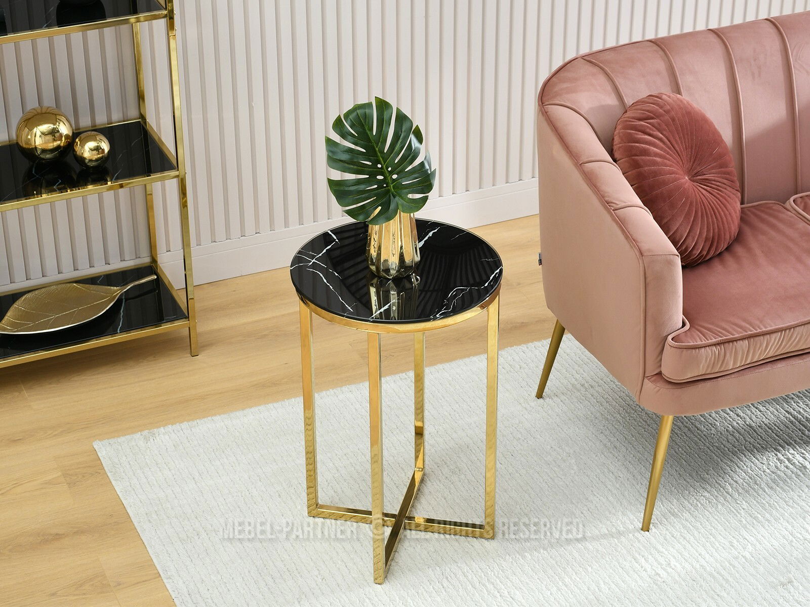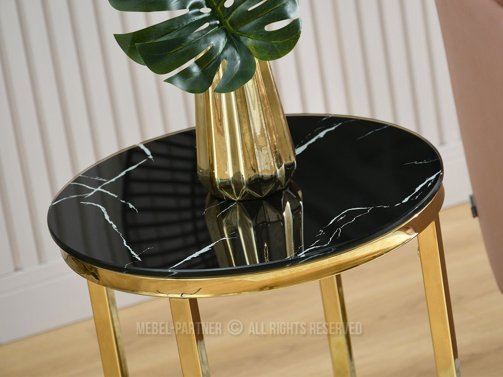 Konferenční stolek Calvis (černý mramor + zlatá)