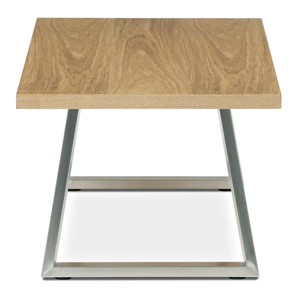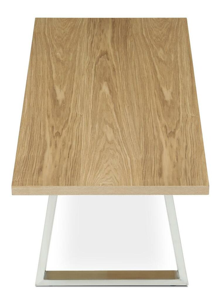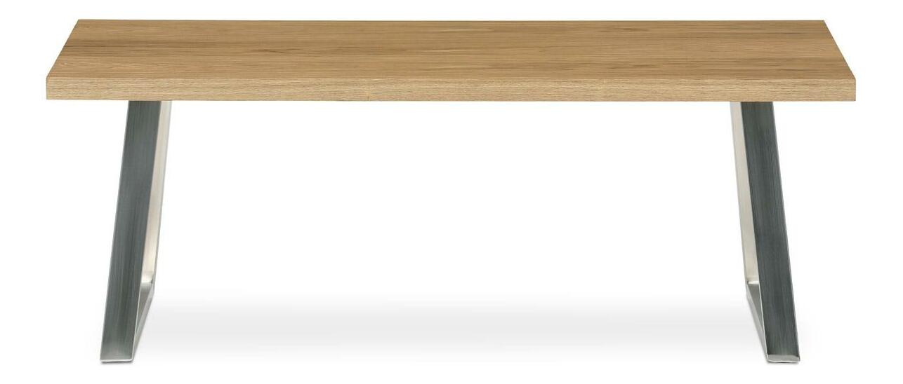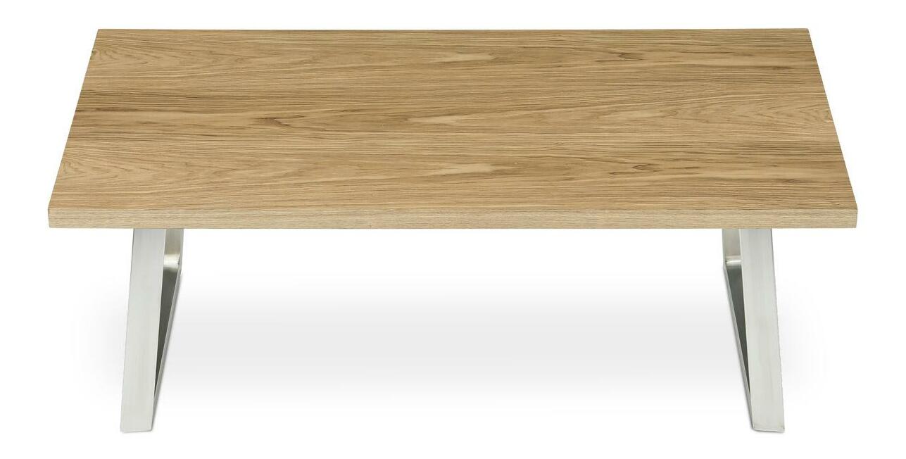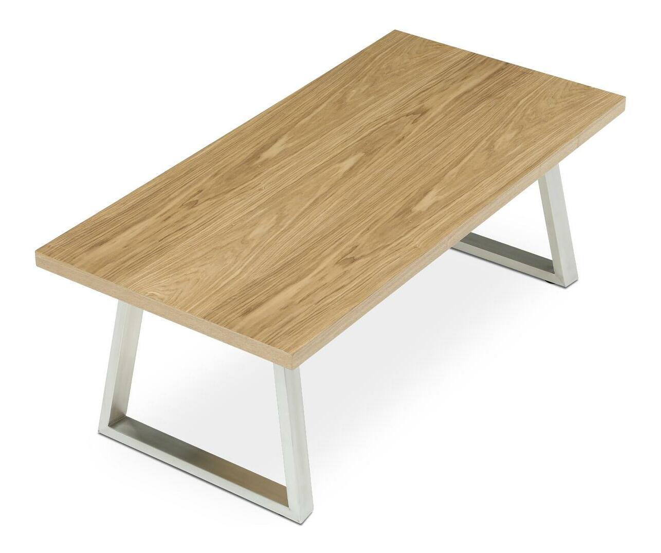 Konferenční stůl v moderním designu, který skvěle zapadne do každého interiéru. Jeho deska je vyrobena z kvalitní dýhy s dekorem dubu, což dodává stolu elegantní a přírodní vzhled. Nohy jsou vyrobeny z broušeného nerezu. Stolek je ideální pro každodenní posezení v rodinném kruhu nebo s přáteli.