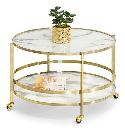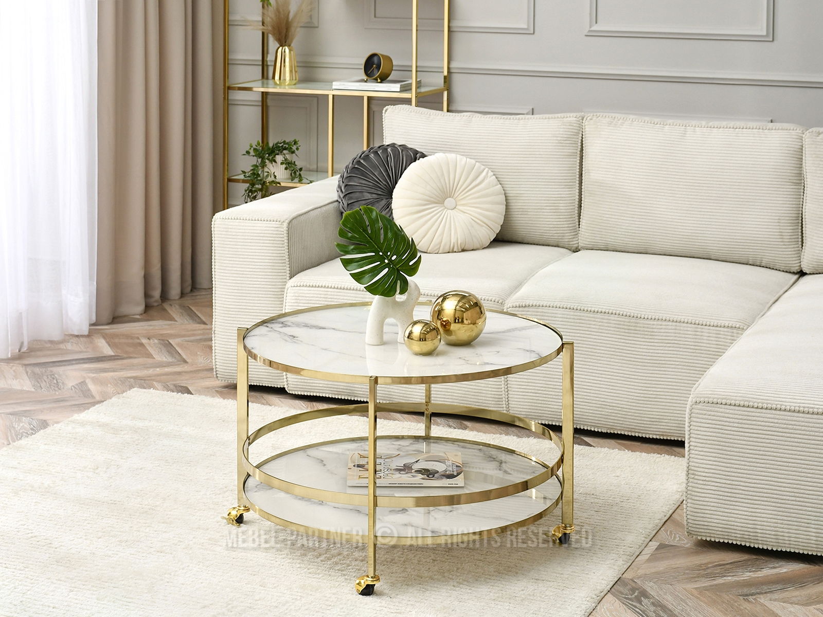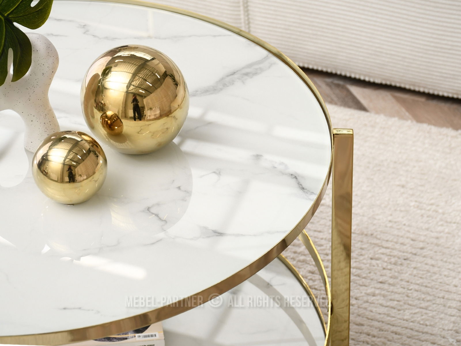 Konferenční stolek Chici (bílý mramor + zlatá)