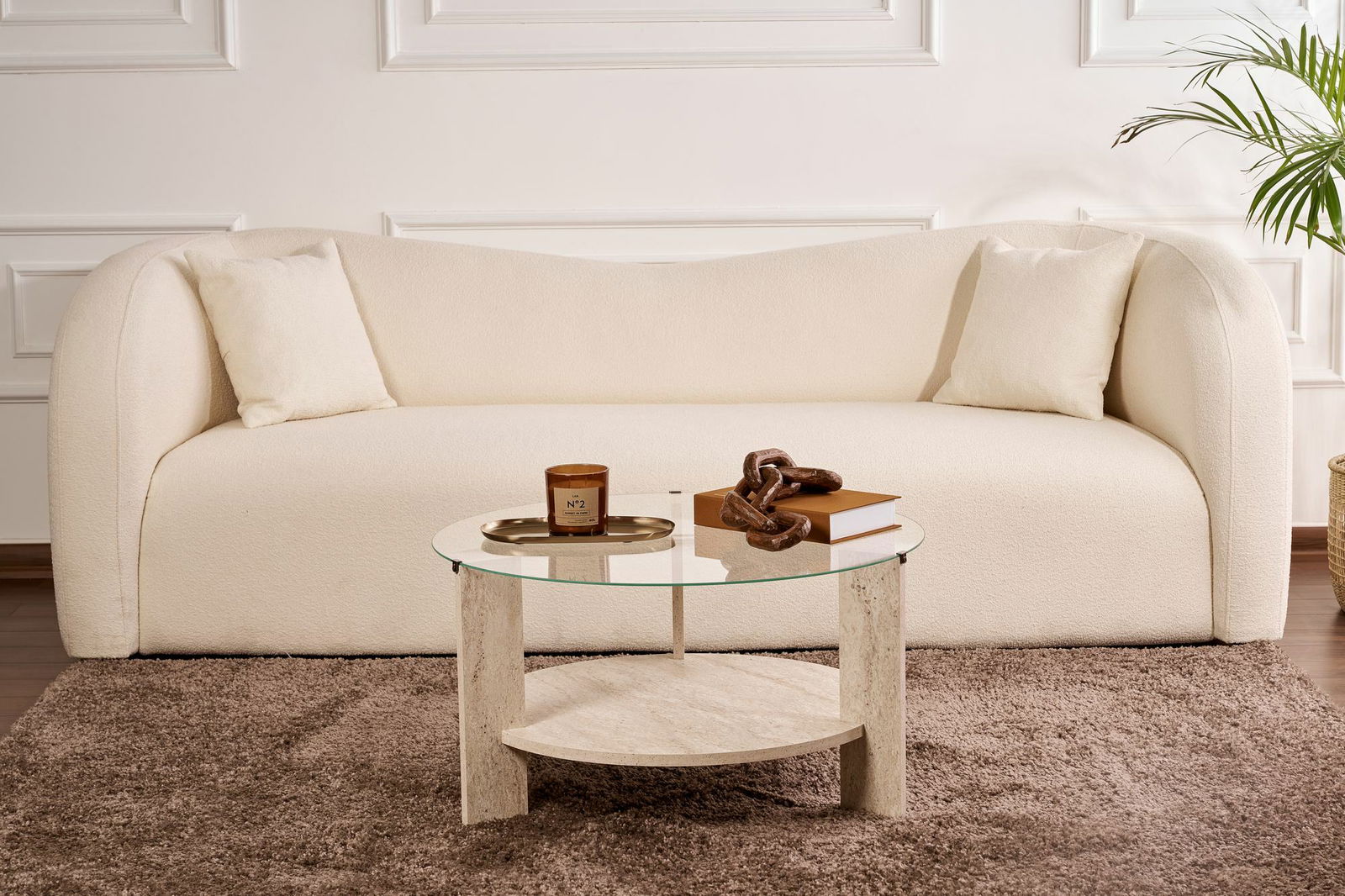 Konferenční stolek Claro (travertin + sklo)