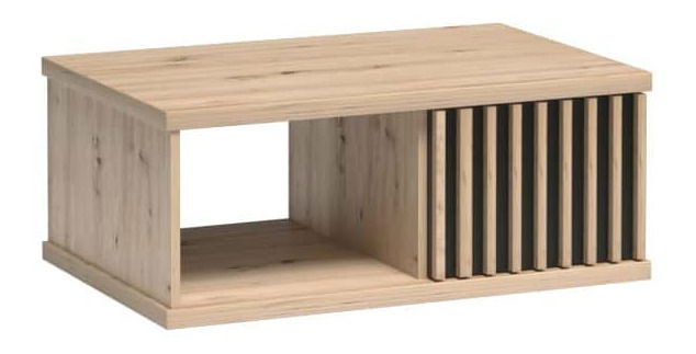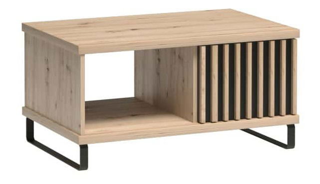 Konferenční stolek Claudi 08 (dub artisan) je funkční nábytek pro váš obývací pokoj. Tento stolek má rozměry 90 x 58 x 36 cm, díky čemuž nabízí dostatek místa pro odkládání různých předmětů. Vychutnejte si pohodlí a relax na terase s tímto konferenčním stolkem. Jeho dvě police a jedna zásuvka jsou zdobeny lištami na černém podkladu, což mu dodává eleganci. Vyrobili jsme jej z kvalitního dubu artisan, který zaručuje odolnost a trvanlivost. Kombinace funkčnosti s moderním designem činí z tohoto stolku perfektní doplněk do vašeho interiéru.