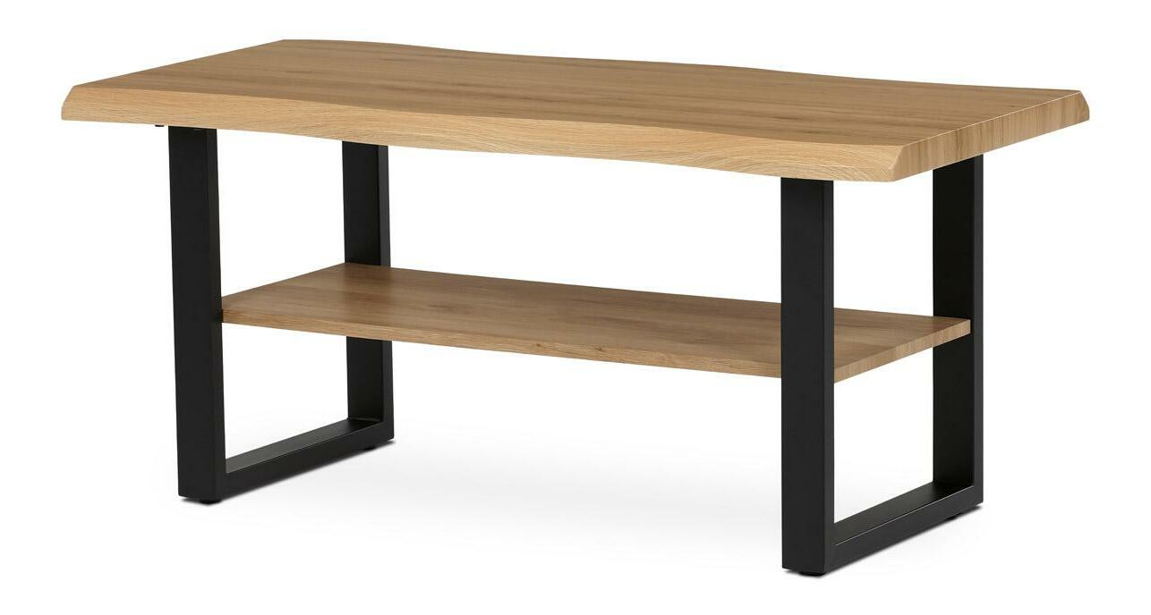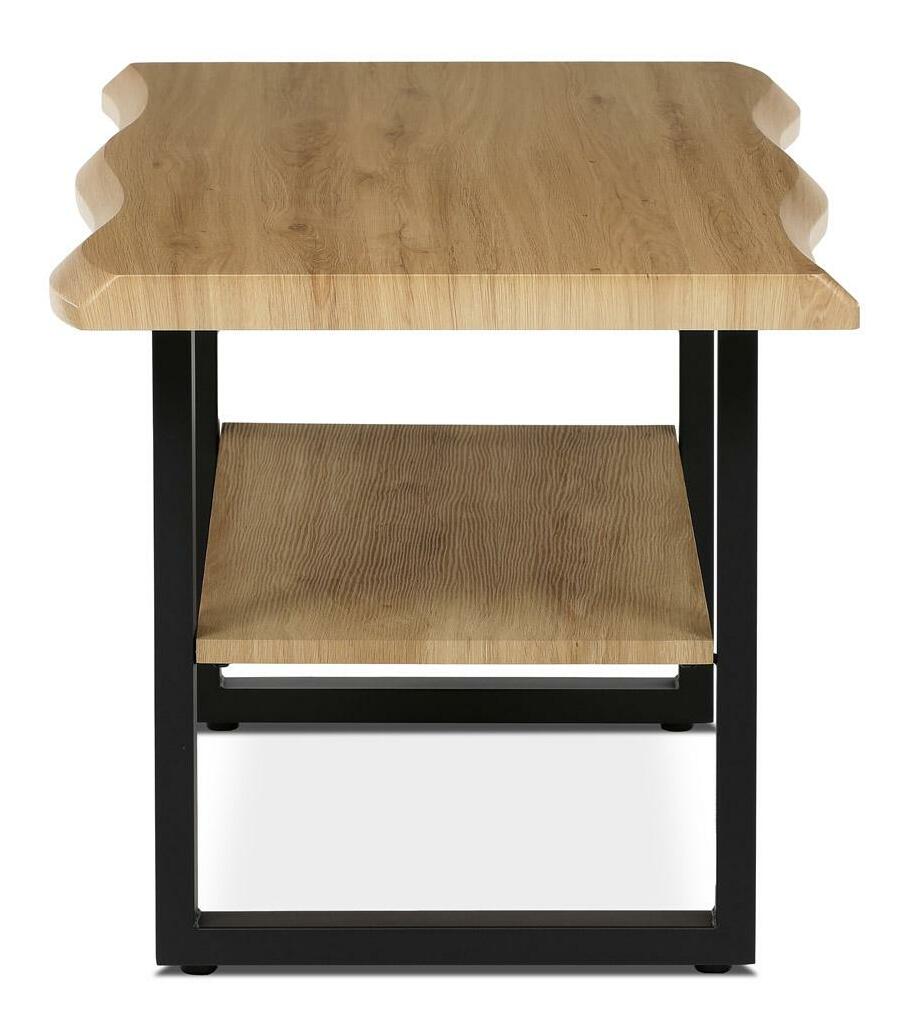 Konferenční stolek zaujme svým jedinečným designem v dekoru přírodního dubu, který přináší do interiéru nádech elegance. Robustní konstrukce kovu zajišťuje stabilitu a dlouhou životnost. Atypický tvar MDF desky dodává stolku vytříbený vzhled a spodní police poskytuje praktický úložný prostor pro knihy či časopisy. Tento stolek je nejen stylovým, ale také praktickým doplňkem pro každou domácnost, kde bude skvěle ladit s ostatním nábytkem v podobném stylu.