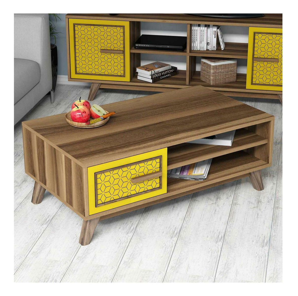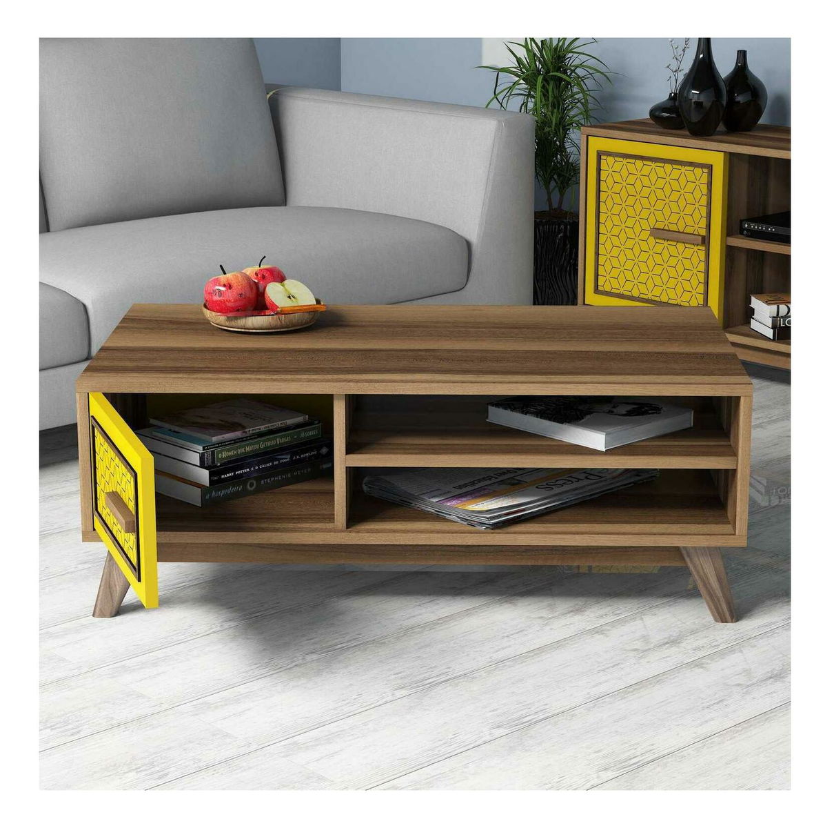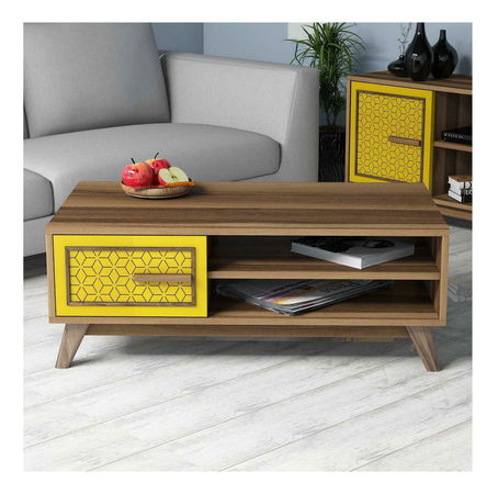 Konferenční stolek Dedute (ořech + žlutá)