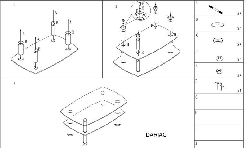 Nohy stolku Daria C pootočené o 45 stupňů směrem dovnitř ho dělají designově zajímavým a nevšedním. Spodní odkládací část stolku je ze skla v černém provedení a vrchní část je průhledná s černým okrajem.