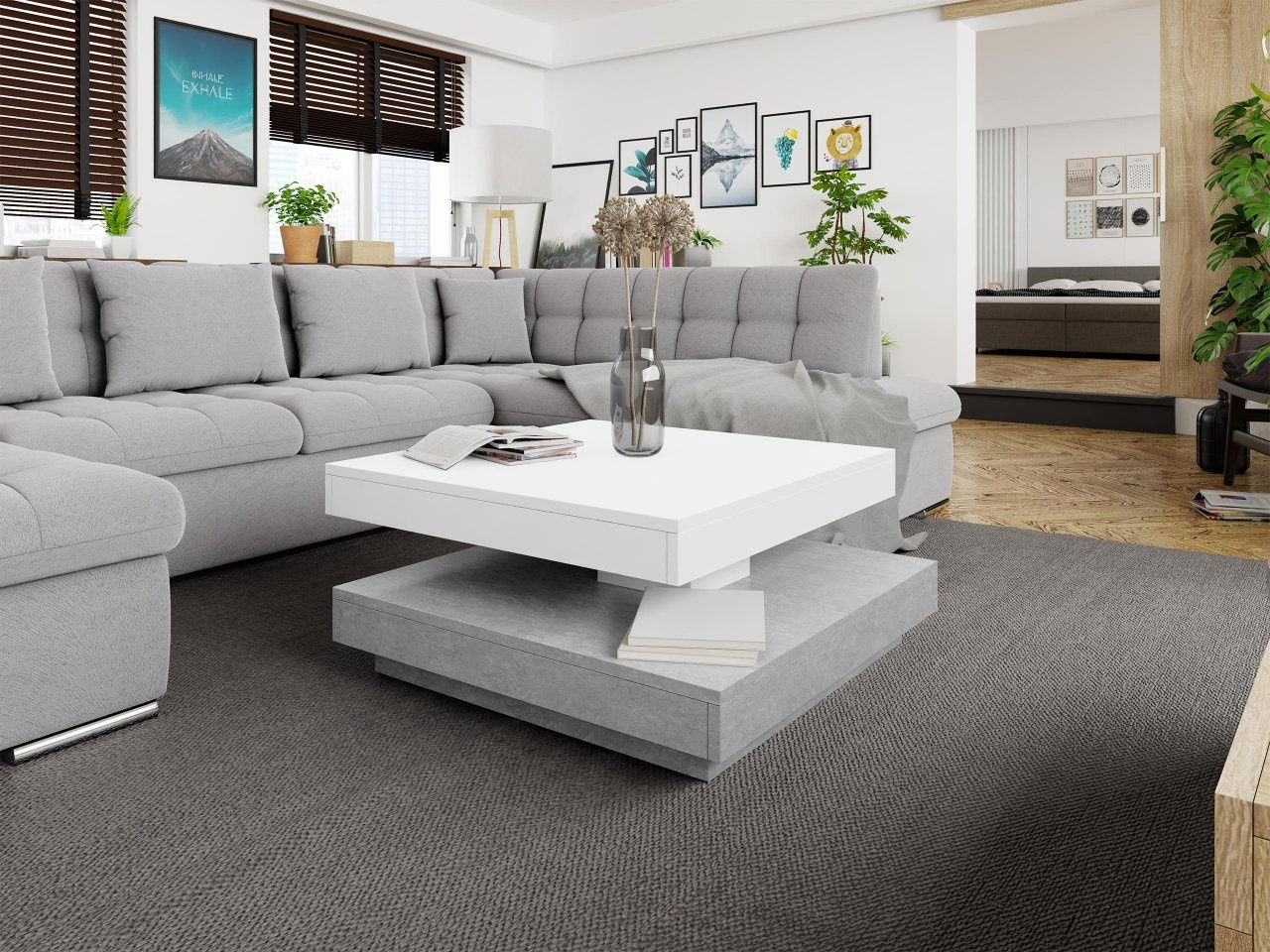 ZobrazitKonferenční stolek je ideální volbou pro ty, kteří hledají pohodlí a styl. Hledáte moderní konferenční stolek, který bude hlavní ozdobou vašeho obývacího pokoje? Náš návrh je model Druzjan! Konferenční stolek Druzjan byl vybaven dvěma užitečnými prkny. Spodní deska je stabilní základnou nábytku, zatímco uspořádání vrchního dílu lze přizpůsobit vašim aktuálním potřebám. Mezi deskami byl použit speciální mechanismus, který umožňuje otočení horní desky stolu o 360 stupňů. Pohyblivá deska nabízí spoustu vybavení pro uživatele a zajímavý dekorativní akcent do obývacího pokoje. Konferenční stolek je vyroben z masivní dřevotřísky a jeho okraje jsou vyztuženy ABS dýhou. Rozměry: šířka: 70 cm, výška: 34 cm, hloubka: 70 cm Provedení: konstrukce stolku: dřevotříska silná 16 mm, ABS hrana, chodidla: kluzák, k dispozici jsou dva vrchní díly (spodní a horní) Čalouněná postel Kevin Moderní podlahové svítidlo Across I 6927 Rohová pohovka Tony Záruka: 24 měsíců