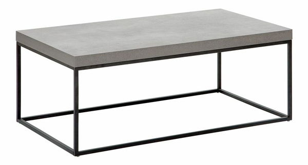 Elegantní a moderní design s nádechem stylu mid-century. Tento obdélníkový konferenční stolek vnese do vašeho interiéru funkčnost a eleganci. Díky otevřené kovové konstrukci působí vzdušně a zároveň nabízí dostatek úložného prostoru. Stolová deska vyrobená z MDF materiálu s povrchovou úpravou v imitaci betonu stolku dodává kouzlo industriálního stylu.