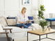 Elegantní a moderní design s nádechem stylu mid-century. Tento obdélníkový konferenční stolek vnese do vašeho interiéru funkčnost a eleganci. Díky otevřené kovové konstrukci působí vzdušně a zároveň nabízí dostatek úložného prostoru. Stolová deska vyrobená z MDF materiálu s povrchovou úpravou v barvě světlého dřeva stolku dodává kouzlo přírodního stylu.