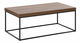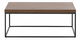 Elegantní a moderní design s nádechem stylu mid-century. Tento obdélníkový konferenční stolek vnese do vašeho interiéru funkčnost a eleganci. Díky otevřené kovové konstrukci působí vzdušně a zároveň nabízí dostatek úložného prostoru. Stolová deska vyrobená z MDF materiálu s povrchovou úpravou v barvě tmavého dřeva stolku dodává kouzlo přírodního stylu.