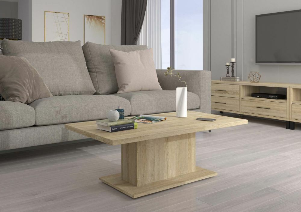 ZobrazitKonferenční stolek Denny (dub sonoma) je ideálním doplňkem pro váš obývací prostor. Vyroben je z kvalitního dubu sonoma, který dodává stolku moderní a elegantní vzhled. Stolek má výšku 43,3 cm a hloubku 110 cm, což jej činí optimálním pro použití jako stolek na kávu nebo čaj pro hosty. Jeho solidní konstrukce a kvalitní materiály zajišťují, že stolek vydrží roky používání. Denny nabízí dostatek místa pro uložení časopisů, knih nebo dálkových ovladačů, aby váš prostor zůstal uklizený a organizovaný. Svým moderním designem a kvalitou provedení je stolek Denny vynikající volbou pro váš domov.