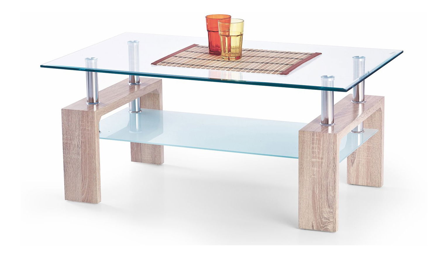 Konferenční stolek je v jednoduchém designu a proto bude vhodný do moderních domácností. Má specifické barevné provedení, kde vrchní deska je vyrobena z tvrdého čirého skla. Podnože stolku si umíte vybrat z viyacerých barevných provedeních.