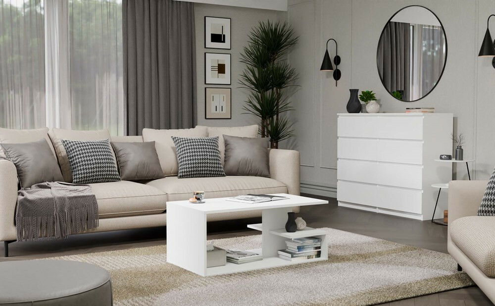 ZobrazitKonferenční stolek Disfruta 1 v elegantní bílé barvě je ideálním doplňkem pro moderní interiéry, ať už do obývacího pokoje, menších místností nebo kanceláří. Jeho minimalistická konstrukce a kvalitní zpracování z laminované desky zaručují dlouhou životnost a praktické využití. Stolek disponuje dodatečnou poličkou, která poskytuje prostor pro uskladnění každodenních předmětů. S rozměry 91 cm na šířku a 40 cm na výšku se skvěle hodí do různých prostor, přičemž jeho jednoduchý design dodává každému prostředí nádech elegance.