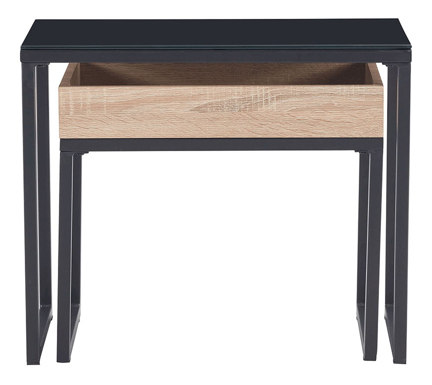 Konferenční stolek Dobson (hnědá) v induštriálním stylu je praktickým doplňkem k pohovce. Nabízí dostatek úložného a odkládacího prostoru současně s moderním designem. Úložný prostor tvořený zásuvkou z MDF umožňuje ukládání předmětů. Materiály, jako jsou MDF, kov a sklo, tvoří pevnou konstrukci. Vrchní stolek má rozměry: výšku 50 cm, šířku 60 cm a hloubku 30 cm. Spodní stolek má rozměry: výšku 44 cm, šířku 50 cm a hloubku 27 cm o výšce 34 cm. MDF rám má výšku 8 cm a vnitřní rozměry 47 cm na šířku a 27 cm na hloubku. Kovový rám má tloušťku 2 cm na šířku a 2 cm na hloubku. Tloušťka skla je 0,6 cm a stolek unese zátěž až 25 kg. Stolek se dodává v demontu.