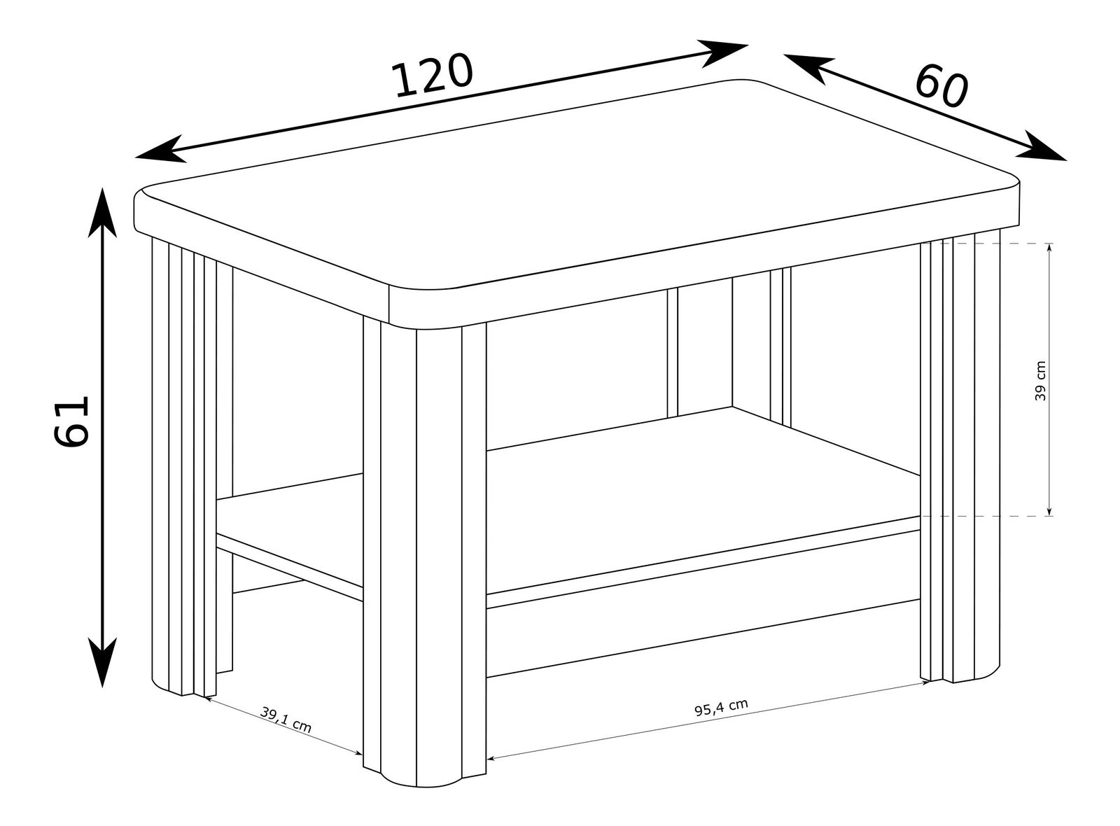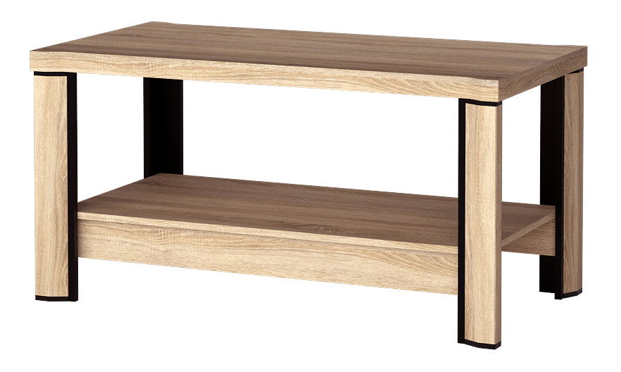 Jednoduchá konstrukce stolu osloví každého, zejména milovníka minimalistického nábytku. Krásné bordury použité na stole jsou skvělým doplňkem, vše, co potřebujete, je pár křesel nebo pohovka, abyste si krásně zařídili svůj obývací pokoj. Díky dvěma typům barev snadno zapadne do dnešních trendů a jiných designů pokojů. Police pod lavici zpestří stůl a umožní vám jej využít jako místo pro doplňky nebo i knihy.