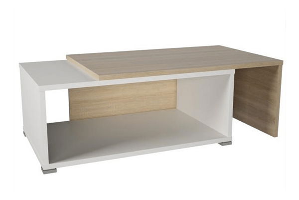 Unikátní konferenční stolek, který si umíte složit dle Vašich představ a potřeb. Můžete ho rozložit po délce, nebo ho poskládat do čtverce. Stolek má odkládací poličku na odkládání časopisů, knížek a jiných doplňků. Je v pěkném barevném provedení dub sonoma v kombinaci s bílou barvou.