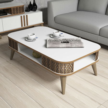 ZobrazitKonferenční stolek Eiffel je moderním a elegantním doplňkem pro váš interiér. S jeho výškou 34 cm, šířkou 105 cm a hloubkou 60 cm nabízí dostatek prostoru pro umístění knih, časopisů a občerstvení. Jeho bílá barva dodává stolku sofistikovaný a čistý vzhled, který se snadno kombinuje s různými typy nábytku. Konferenční stolek Eiffel je vyroben z kvalitních materiálů, což zaručuje jeho pevnost a odolnost. Díky svému designu a praktičnosti je ideálním doplňkem pro váš obývací pokoj nebo kancelář.