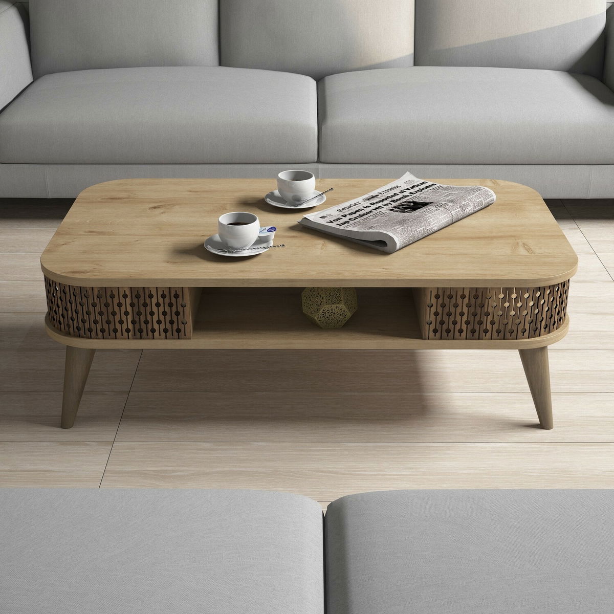 ZobrazitKonferenční stolek - Eiffel (Dub) je stylový a praktický kus nábytku, ideální pro každý obývací pokoj nebo kancelář. S výškou 34 cm, šířkou 105 cm a hloubkou 60 cm poskytuje dostatek prostoru pro uspořádání časopisů, knih, čajových šálků a dalších drobností. Stolek je vyroben z kvalitního dubového dřeva, což zaručuje jeho odolnost a dlouhou životnost. Jeho elegantní design s inspirací z Eiffelovy věže přidává každému prostoru šmrnc a charakter. Svou funkčností a jednoduchostí je konferenční stolek Eiffel (Dub) ideálním doplňkem pro každého náročného zákazníka.