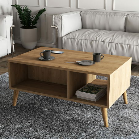 Konferenční stolek - Essex (Dub) je stylový a praktický kus nábytku pro váš domov. S výškou 44,1 cm, šířkou 90 cm a hloubkou 54 cm, tento stolek je ideální pro konferenční místnosti, obývací pokoje nebo kanceláře. Jeho dubový povrch přidává přírodní a teplý vzhled do vašeho interiéru. Stolek je vyroben z kvalitního materiálu, což zaručuje jeho dlouhou životnost a odolnost. Jeho pevná konstrukce poskytuje stabilní a bezpečný povrch pro umístění různých předmětů, jako jsou knihy, časopisy nebo šálky s kávou. Bez ohledu na to, zda pořádáte konferenci nebo jen odpočíváte s rodinou a přáteli, Konferenční stolek - Essex (Dub) je ideálním doplňkem pro váš prostor.