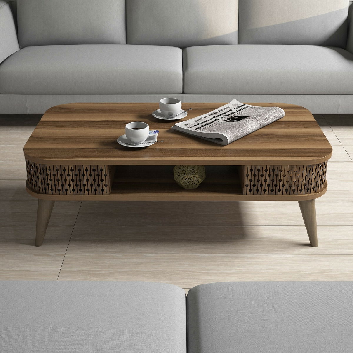 ZobrazitKonferenční stolek - Eiffel (Ořech) je elegantní a funkční nábytek, který přinese do vašeho interiéru stylový dotek. S výškou 34 cm, šířkou 105 cm a hloubkou 60 cm je ideální volbou pro posezení u kávy či čtení. Jeho ořechový povrch dodává stolku přirozený a teplý vzhled, který se hodí do jakéhokoli prostoru. Konferenční stolek Eiffel je vyroben z kvalitních materiálů, což zaručuje jeho dlouhou životnost a odolnost vůči poškození. Jeho jednoduchý a moderní design jej činí univerzálním a snadno kombinovatelným s ostatním nábytkem ve vaší místnosti. Nechte se okouzlit elegancí a praktičností konferenčního stolku Eiffel.