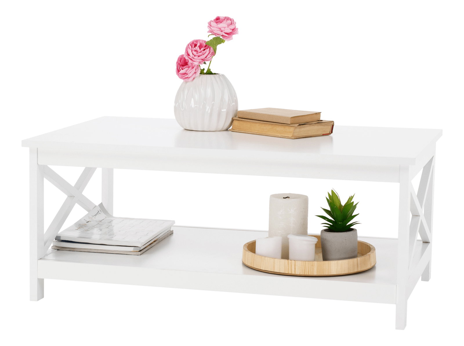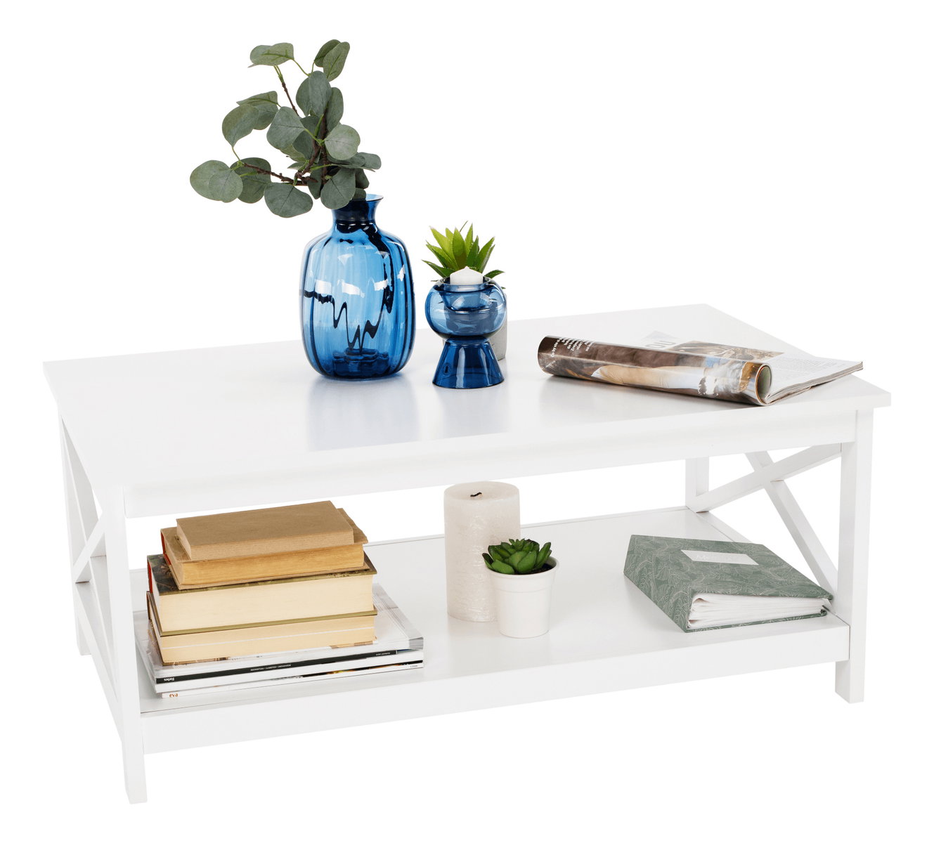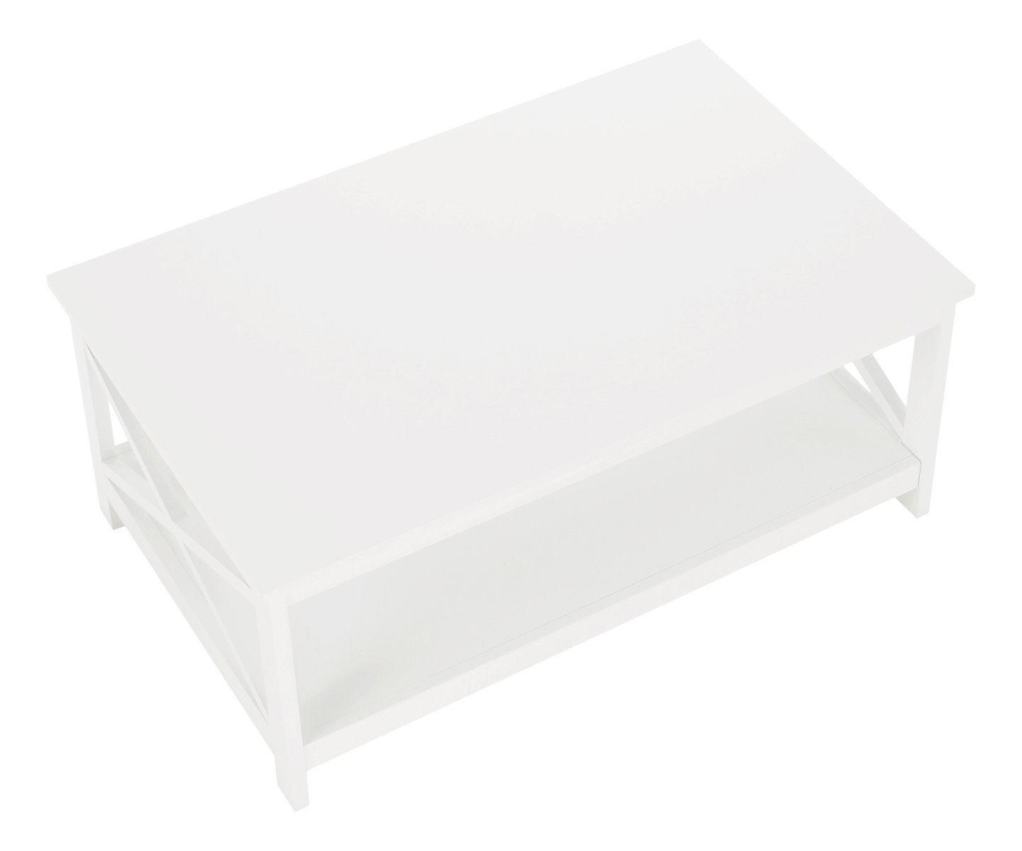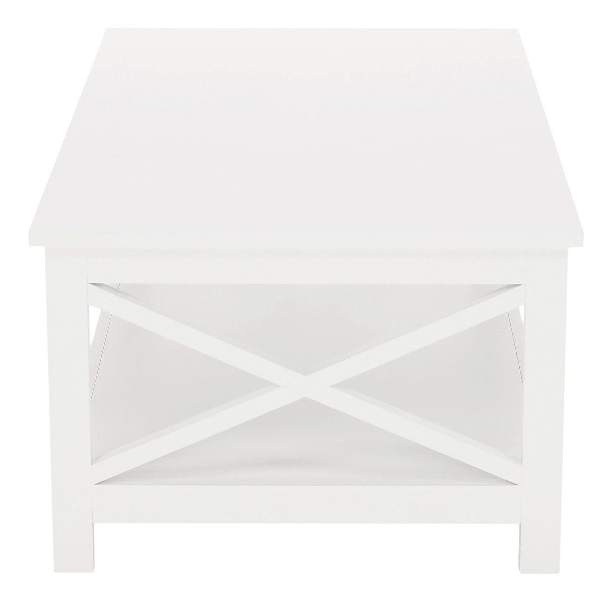 Konferenční stolek Etta (bílá) je skvělým doplňkem pro váš moderně zařízený obývací pokoj. Jeho design a stylové bílé provedení jistě upoutají vaši pozornost. Vyrobený z kvalitního materiálu MDF, tento stolek je nejen pěkný, ale také odolný. S výškou 37 cm, šířkou 87 cm a hloubkou 54,5 cm, nabízí dostatek prostoru pro odložení rozečtené knihy nebo časopisu na jeho praktické polici. Boční strany stolku připomínající písmeno x přidávají konferenčnímu stolku Etta estetický zážitek. Buďte inovativní a přidejte do vašeho obývacího pokoje tento stylový konferenční stolek Etta.
