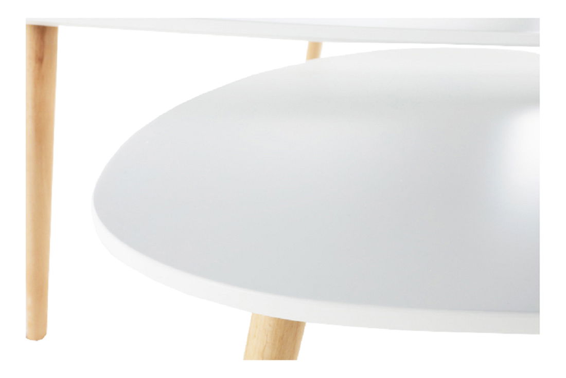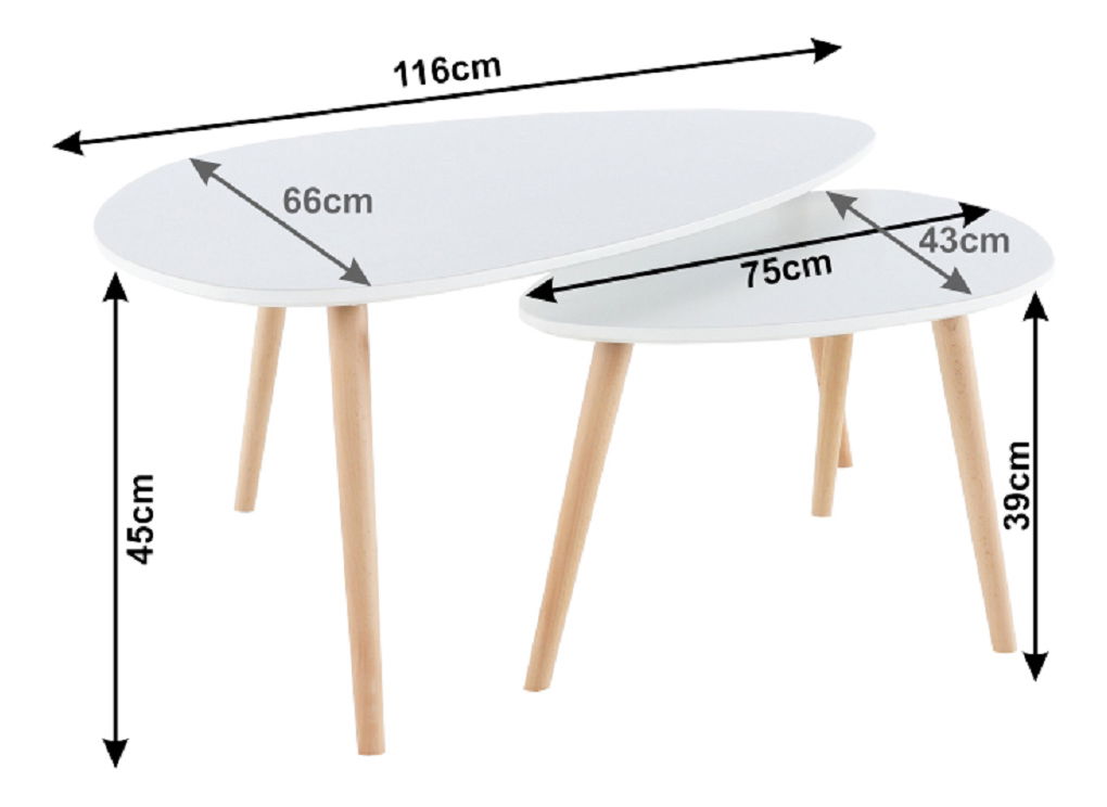 Konferenční stolek Faith (bílá + buk) vám přinese moderní nádech do vašeho obývacího prostoru. Tento set dvou stolků je vyroben kombinací kvalitního MDF materiálu a dřeva. Bílá barva a nožičky v provedení buk dotváří elegantní vzhled. Díky rozměrnostem 116 cm na šířku, 66 cm na hloubku a výšce 45 cm, budete mít dostatek místa pro uložení časopisů, nápojů a jiných položek. Stolek Faith bude jistě stylovým doplňkem vašeho interiéru.