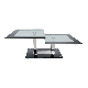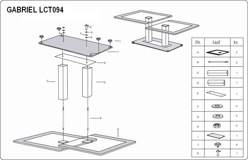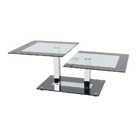 Konferenční stolek Gabriel a jeho design je navržen tak, aby se hodil do každého moderního prostoru. Lesklé ocelové nohy ve tvaru hranolu drží odkládací plochy z tvrzeného čirého skla. Jsou olemovány černým páskem, čímž se dokonale hodí k černému podstavci. Odkládací plochy jsou ve dvou výškových úrovních a dodávají stolku jedinečnost.