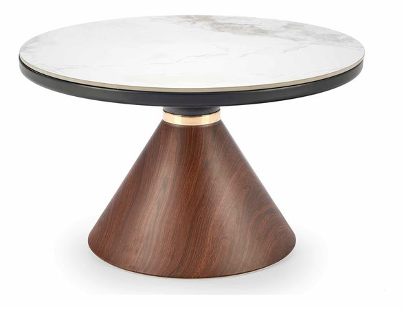 Konferenční stolek Gayle (mramor bílý + ořech + zlatá)