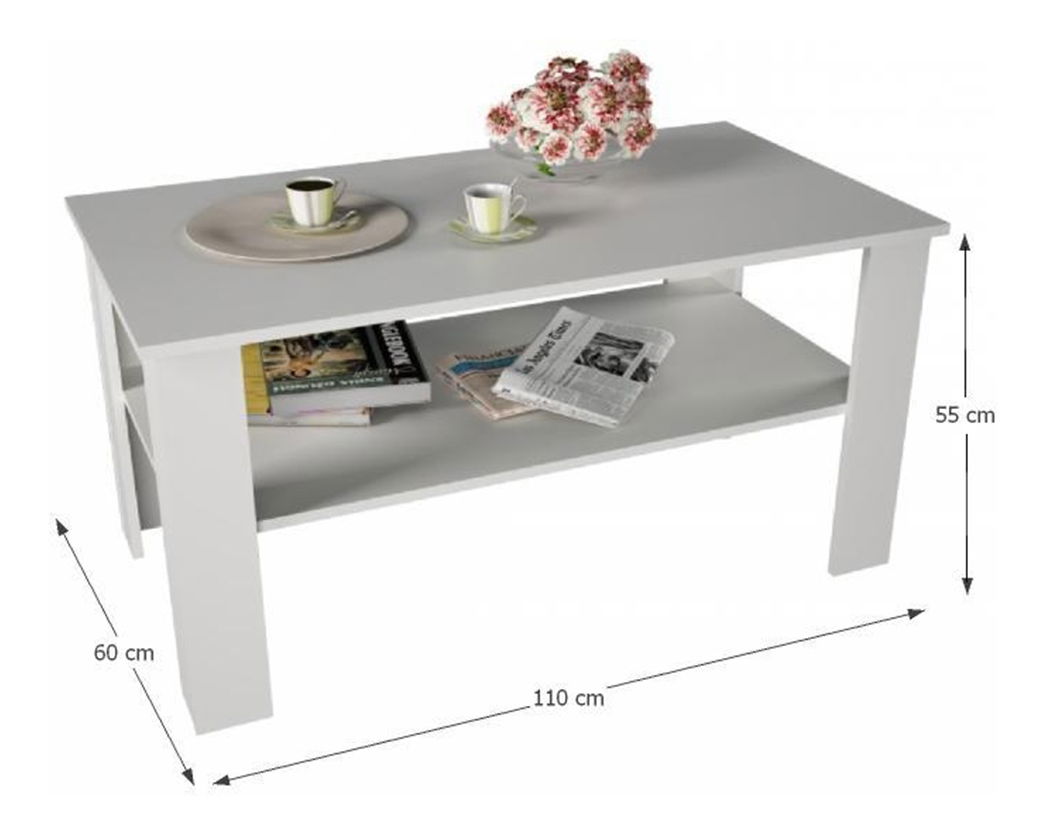 Konferenční stolek Gertha (bílá) je ideálním doplňkem pro váš kancelář nebo obývací pokoj. S jeho rozměry 110x60x55 cm a výškou 55 cm je dostatečně velký pro umístění kávy, čaje, dokumentů nebo jiných potřeb. Konferenční stolek Gertha je vyroben z kvalitní DTD laminované desky o tloušťce materiálu 16 mm, která zaručuje jeho pevnost a dlouhou životnost. Jeho bílá barva dodává vašemu pokoji moderní a elegantní vzhled. Konferenční stolek Gertha je dodáván v demontu, což umožňuje snadnou montáž a skladování. Všechny tyto vlastnosti dělají z konferenčního stolku Gertha kvalitní český výrobek, který se bude hodit do každého pokoje a bude sloužit jako praktický a pěkný nábytek.