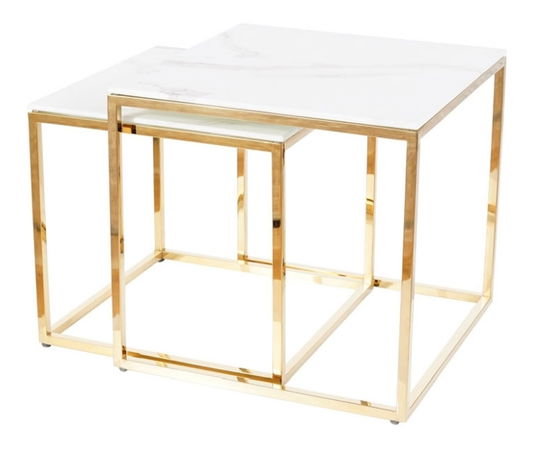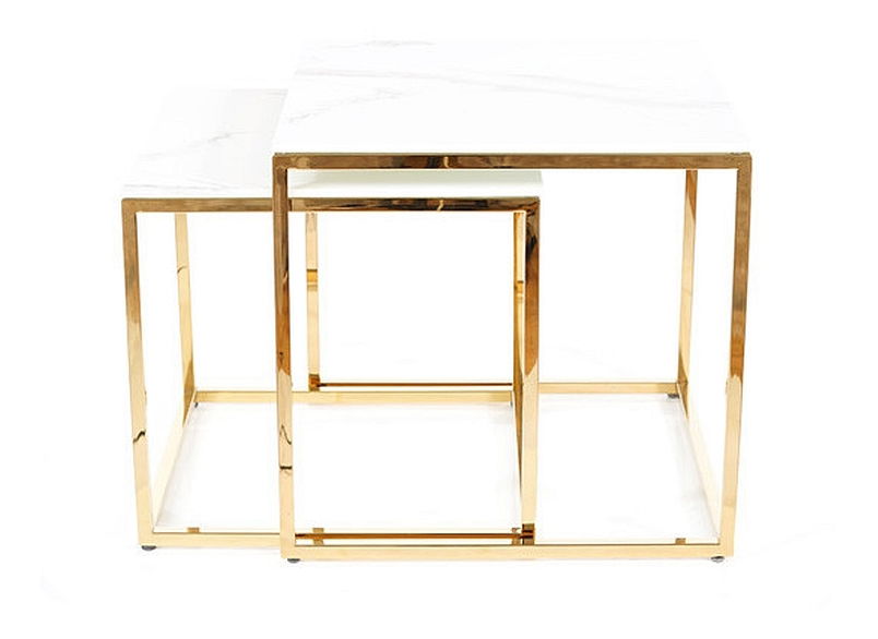 Konferenční stolek Glynis (mramor + zlatá) je moderní a elegantní nábytek, který dodá vašemu obývacímu pokoji luxusní styl. Stolek je vyroben z kvalitního mramoru, který dodává stolu jedinečný charakter a zlatá konstrukce činí z něj skutečný klenot. Díky své výšce 43 cm a hloubce 45 cm je ideální jako konferenční stolek, kde si můžete s přáteli a rodinou vychutnat kávu nebo čaj. Jeho stylový design a kvalitní zpracování dělají z tohoto stolu dokonalý kousek nábytku pro každého, kdo chce přidat šmrnc svému interiéru. S Konferenčním stolkem Glynis (mramor + zlatá) získáte nejen praktický, ale také nádherný přídavek do svého domova.