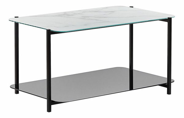 Doplňte vzhled svého obývacího pokoje tímto moderním konferenčním stolkem. Bílá stolová deska s mramorovým efektem mu dodává šmrnc a krásně kontrastuje s černou konstrukcí. Stolek má praktickou spodní polici, kam můžete odkládat oblíbené časopisy nebo dálkové ovladače. Díky jednoduchému designu a univerzálním barvám bude výborně ladit s mnoha styly interiérového zařízení.