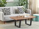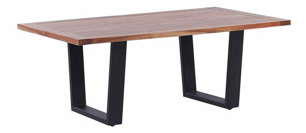 Tento konferenční stolek je krásným doplňkem do každého moderního obývacího pokoje. Hrubá stolová deska je vyrobena z akáciového dřeva a je umístěna na kovových nohách s černým práškovým nástřikem. Kombinace dvou materiálů dodává tomuto kousku industriální nádech. Díky svému designu je ideálním místem k posezení u šálku kávy nebo chutném jídle.