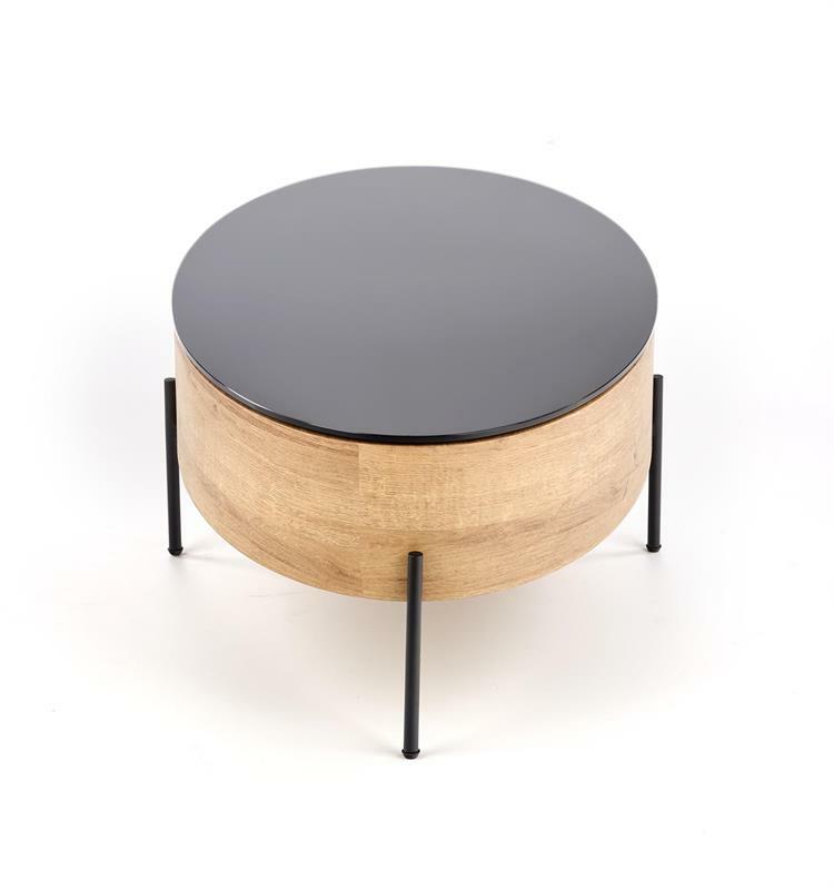 Konferenční stolek Held je ideální doplněk pro váš obývací prostor. S výškou 37 cm a hloubkou 60 cm má dostatek místa pro uspořádání časopisů, knih nebo dekoračních předmětů. Stolek je vyroben z kombinace skla, MDF laminovaného materiálu a práškově lakované oceli, díky čemuž je pevný a stabilní. Jeho elegantní design v dubové barvě se zlatými prvky a černou barvou vytváří moderní vzhled, který dokonale doplňuje jakýkoli interiér. Konferenční stolek Held je skvělým řešením pro ty, kteří hledají nejen praktický, ale také stylový nábytek.
