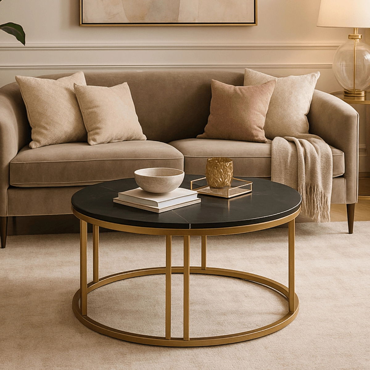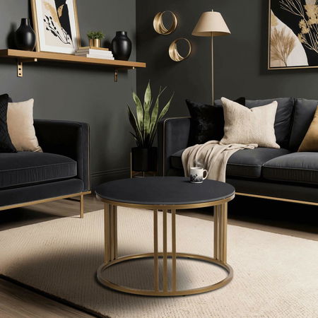 Konferenční stolek Kenrucky (mramor černý + zlatá)
