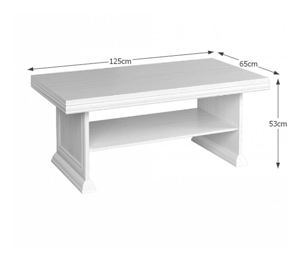 Jednoduchý a krásný konferenční stolek Kraz, který se vyznačuje masivním rustikálním stylem. Je vhodný do obýváků a oblíbí si ho lidé toužící po tradičnějším vzhledu nábytku. Má ozdobné vyřezávané lišty a odkládací poličku pro knihy a časopisy. Barevné provedení stolku je sosna andersen.