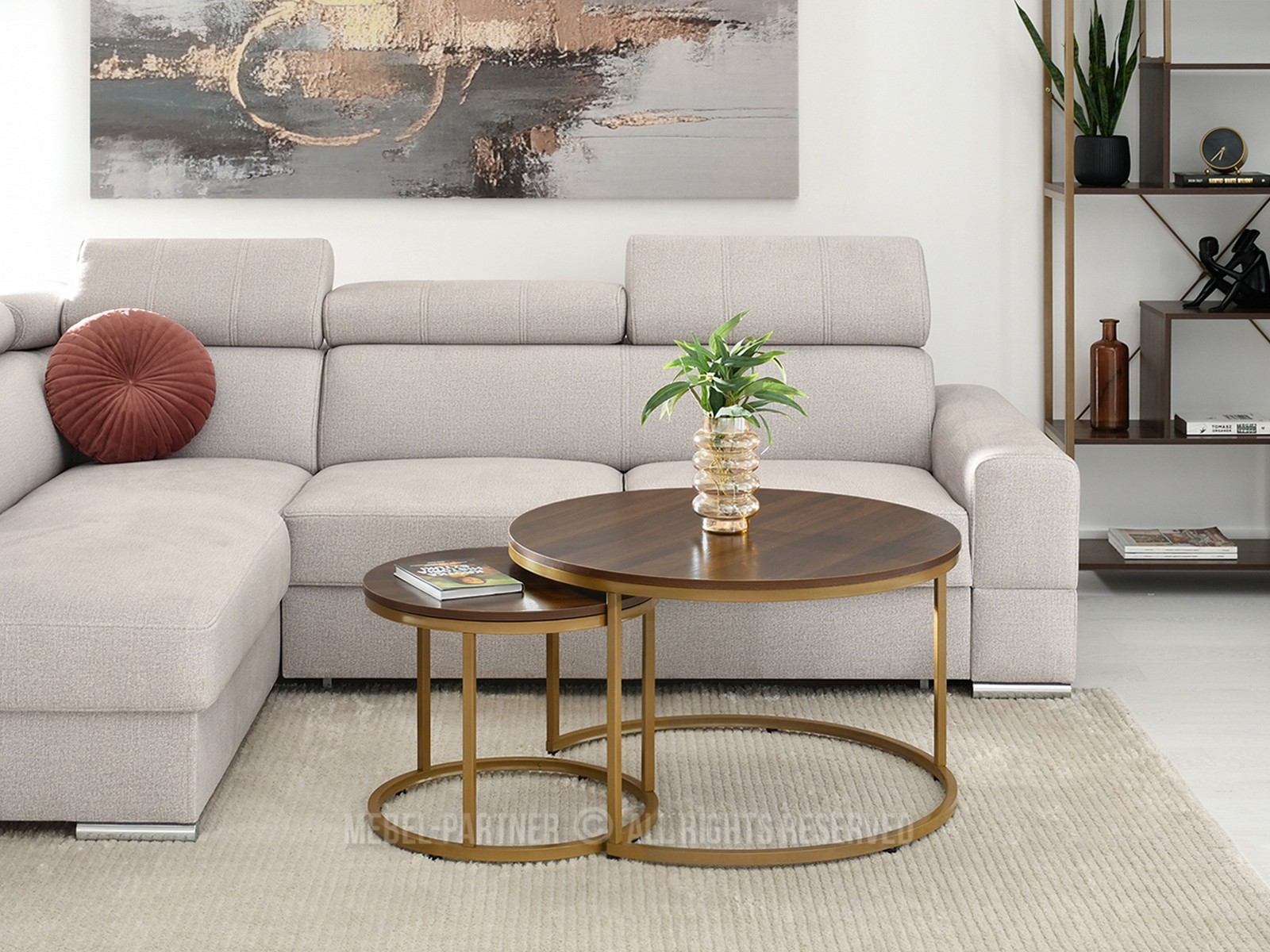 Konferenční stolek Klara (ořech + zlatá)
