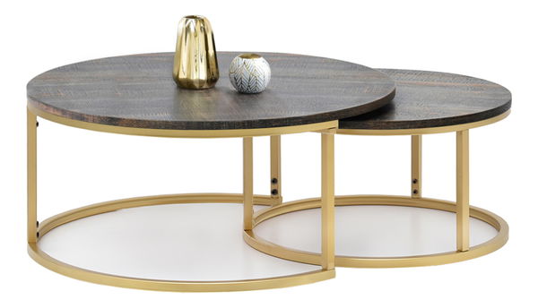 Konferenční stolek Kolja Zest Xl (zlatá + dub vintage)