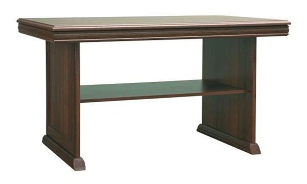 Jednoduchý a krásný konferenční stolek Kraz, který se vyznačuje masivním rustikálním stylem. Je vhodný do obýváků a oblíbí si ho lidé toužící po tradičnějším vzhledu nábytku. Má ozdobné vyřezávané lišty a odkládací poličku pro knihy a časopisy. Barevné provedení stolku je Samoa king.
