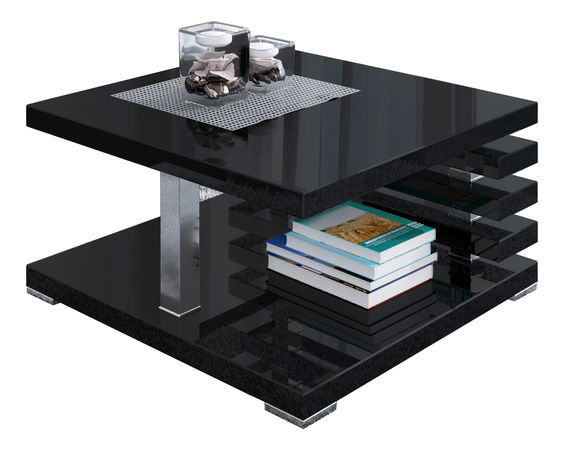 Konferenční stolek Kyram (lesk černý) je moderní nábytek, který skvěle doplní váš obývací prostor. Výška 31 cm, šířka 60 cm a hloubka 60 cm zajišťují dostatek místa pro různé dekorační prvky nebo časopisy. Stolek má lesklý povrch v černé barvě, který se snadno udržuje a dodává místnosti elegantní vzhled. Jeho jednoduchý design se hodí do každého interiéru a díky kvalitním materiálům bude sloužit po mnoho let. Konferenční stolek Kyram (lesk černý) je nádherným kouskem nábytku, který jistě potěší každého zákazníka.