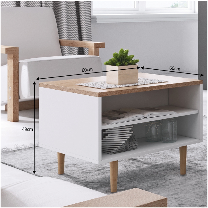 Praktický konferenční stolek ve skandinávském stylu má až 2 poličky, které můžete využít jako úložný prostor na časpisy, knihy a pod.