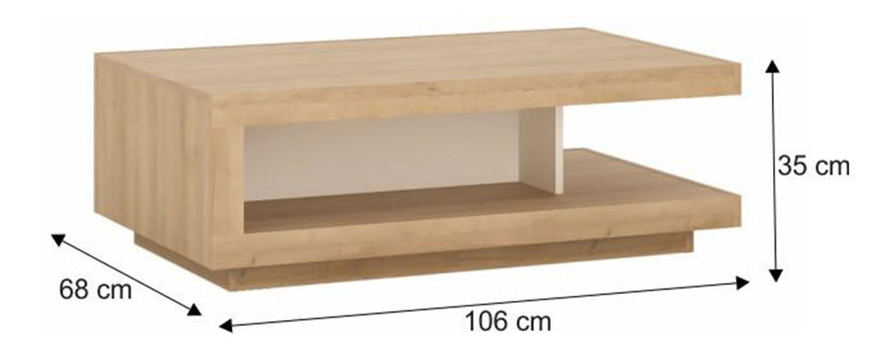 ZobrazitKonferenční stolek, který Vás zaujme svým neobyčejným designem. Spodní část stolek slouží jako odkládací polička na časopisy, noviny nebo jiné drobnosti. Použité materiály jsou odolné vůči poškrábání a vlhkosti. Barevné provedení stolku je dub riviera v kombinaci s extra vysokým bílým leskem.
